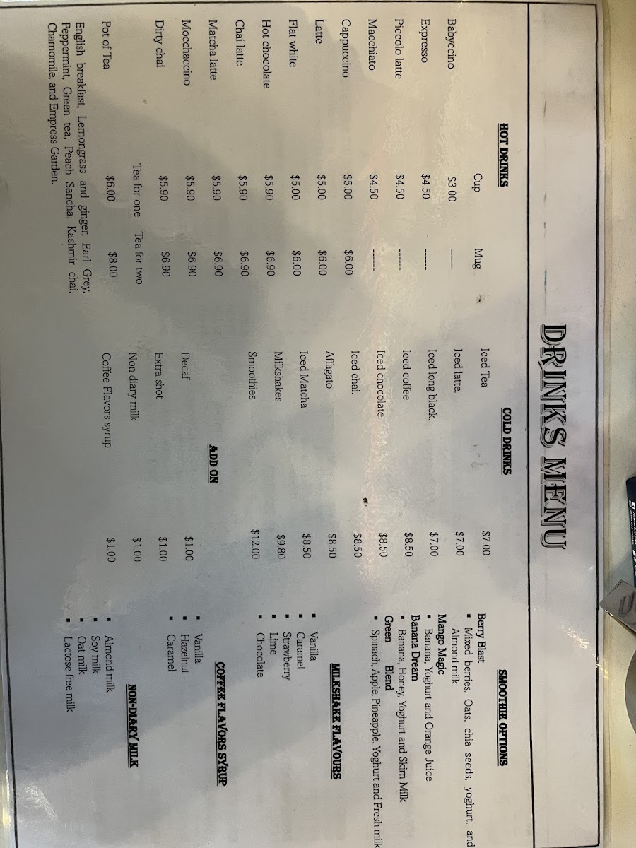 The menu is a delightful blend of classic and contemporary offerings, meticulously curated to satisfy diverse palates. Popular choices include the Smashed Avocado, elegantly plated with Danish feta and served on sourdough toast—a dish that bursts with fresh flavors and creamy textures for just A$19.50. For those looking to indulge in a hearty breakfast, the Big Breakfast Burrito is a must-try; stuffed with eggs, bacon, grilled tomato, mushroom, spinach, breakfast sausage, house beans, and hash brown, you'll experience a delightful explosion of flavors for A$24.50.